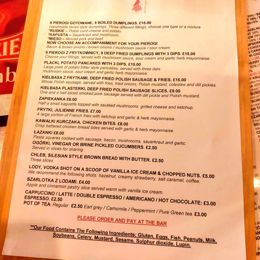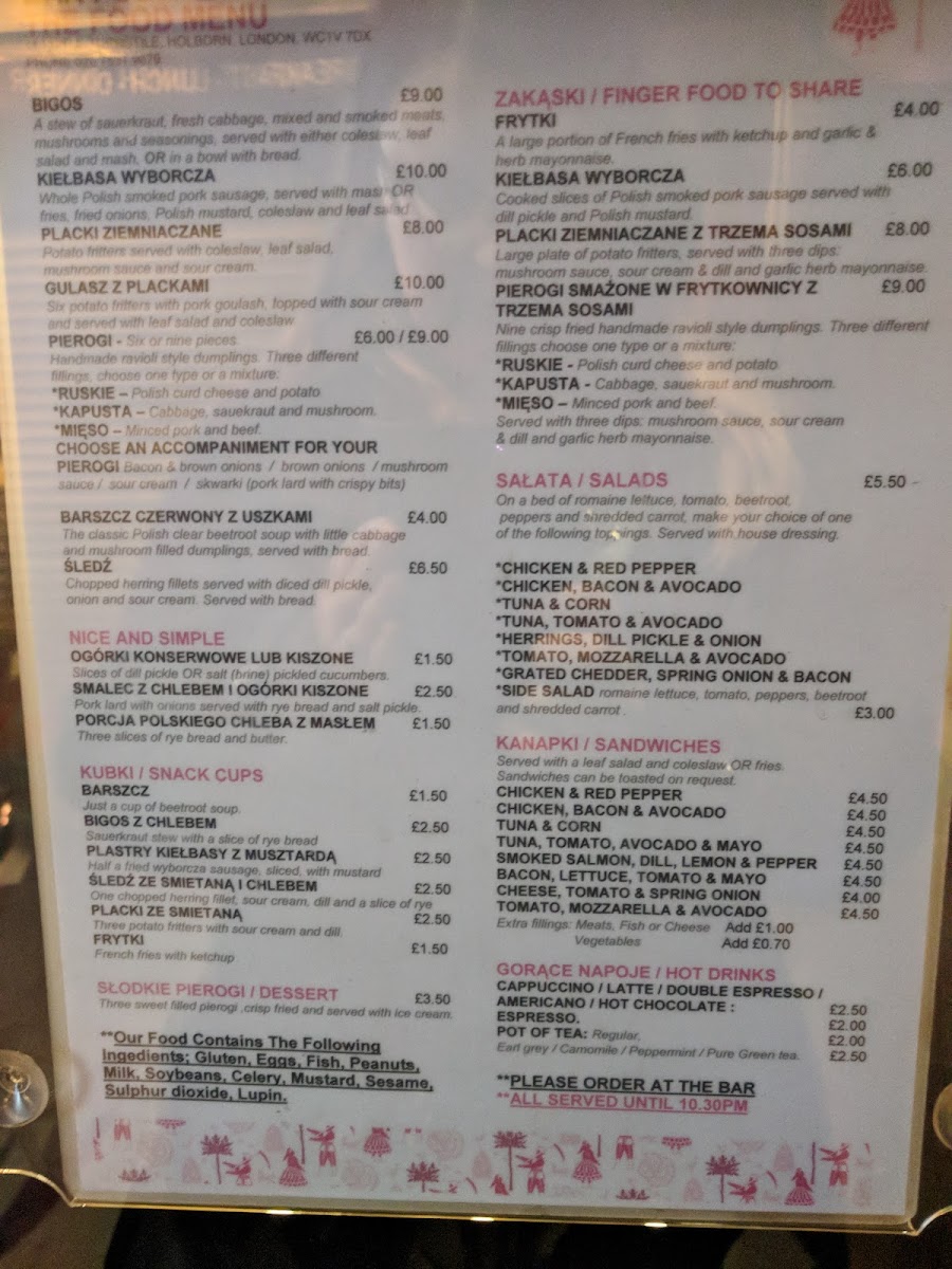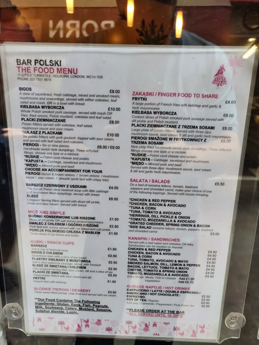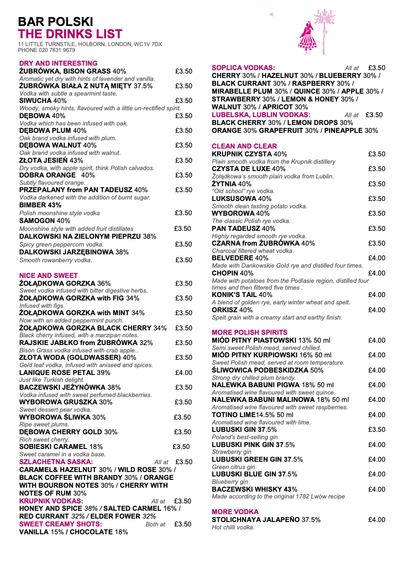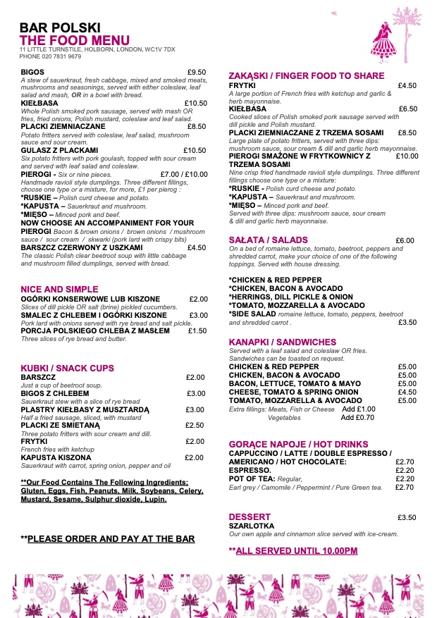 Bar Polski Menu